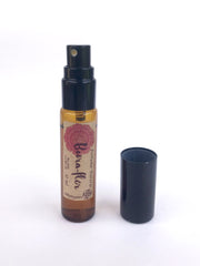 Perfume à base de álcool, em frasco de vidro âmbar de 10ml e com aplicador em spray.