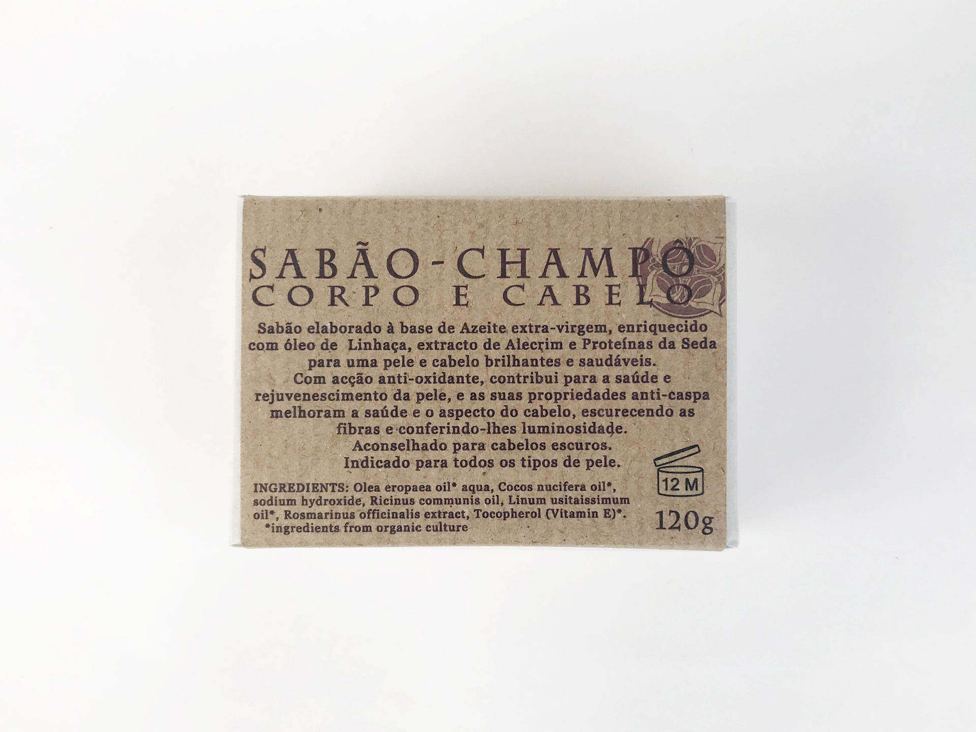 Sabão elaborado à base de Azeite extra-virgem, enriquecido com óleo de Linhaça, extrato de Alecrim e Proteínas de Seda, para uma pele e cabelo brilhantes e saudáveis.